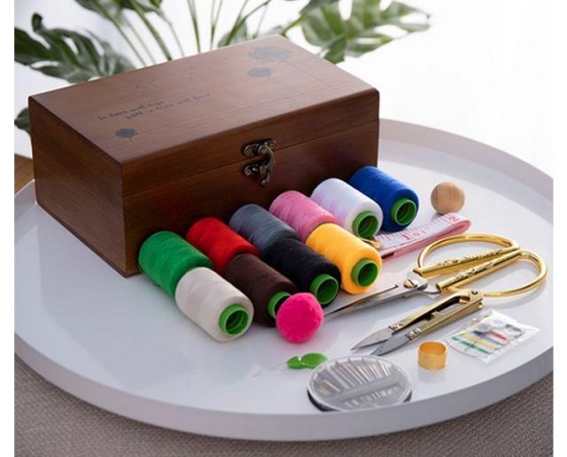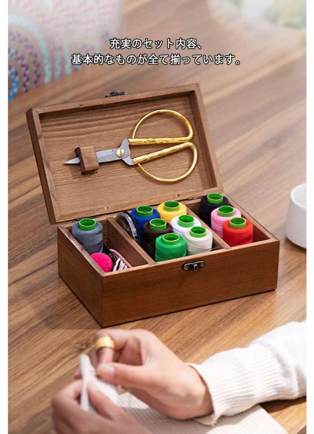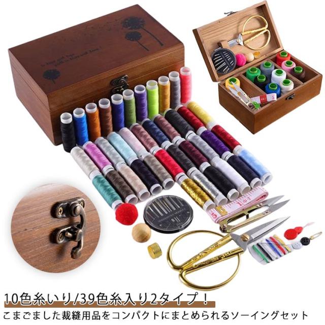 大容量 ソーイングセット 木製 裁縫道具 10色糸いり/39色糸入り ソーイングボックス 裁縫セット おしゃれ 裁縫ケース 裁縫箱 裁縫箱 大人向け 収納 収納ボックス ナチュラル 手芸 小物入れ お道具箱 大人 かわいい ギフト