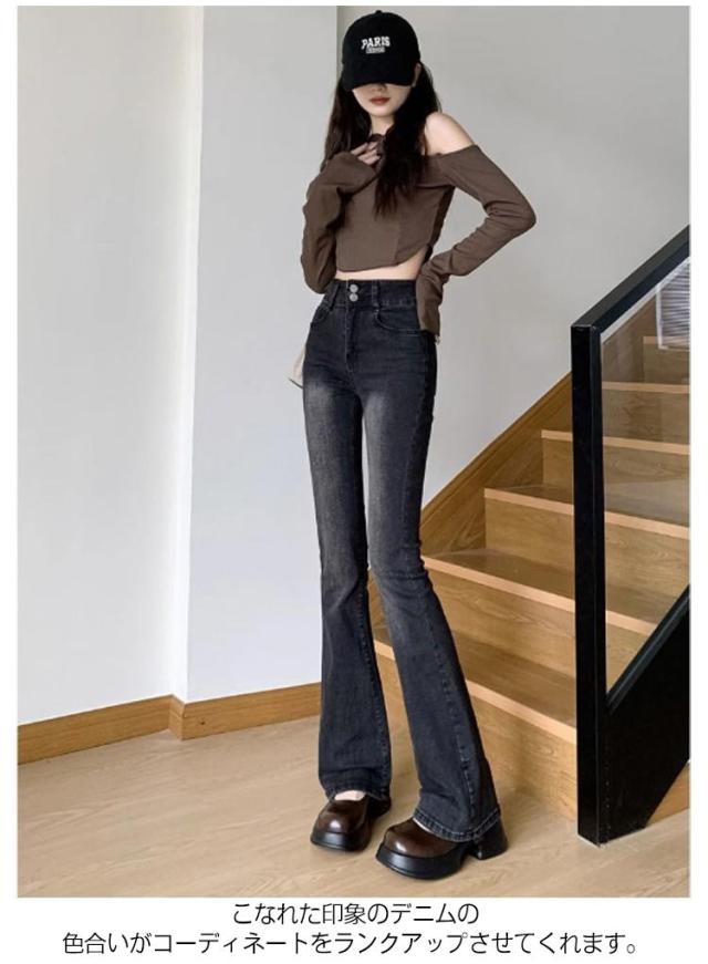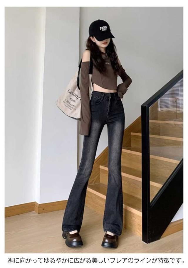 ズボン 大きいサイズ フレアパンツ レディース デニムパンツ 着痩せ 脚長効果 ジーンズ ハイウエスト ブーツカット オールシーズン きれいめ 美脚 フレアパンツ 大人 きれいめ