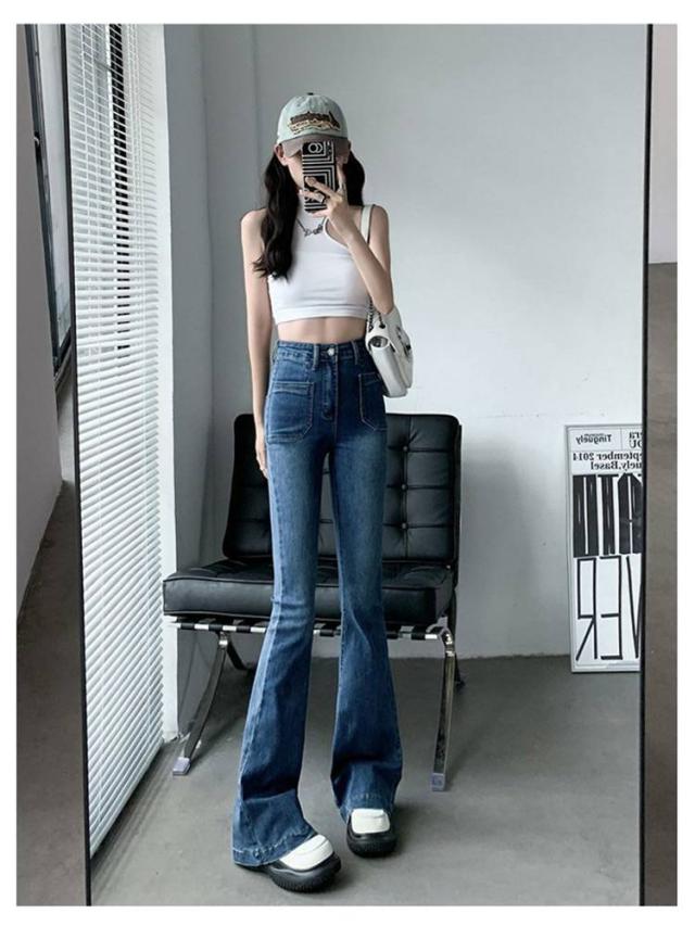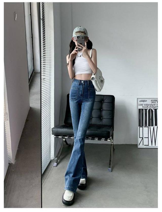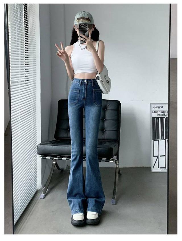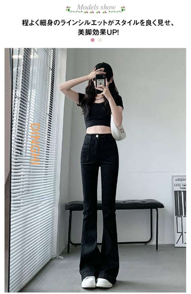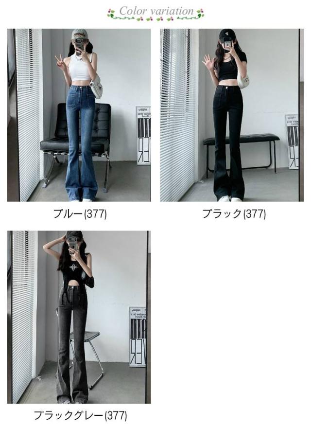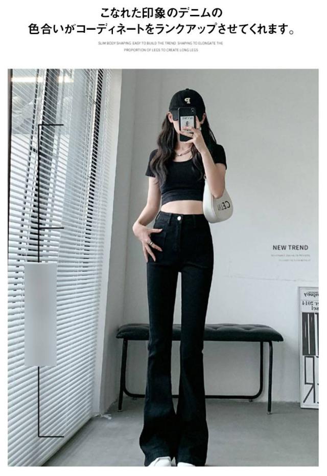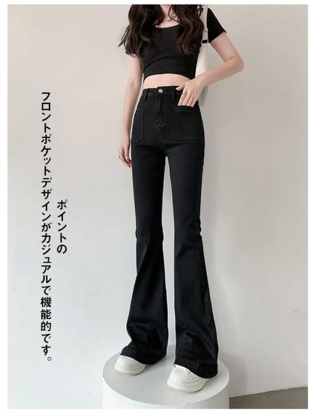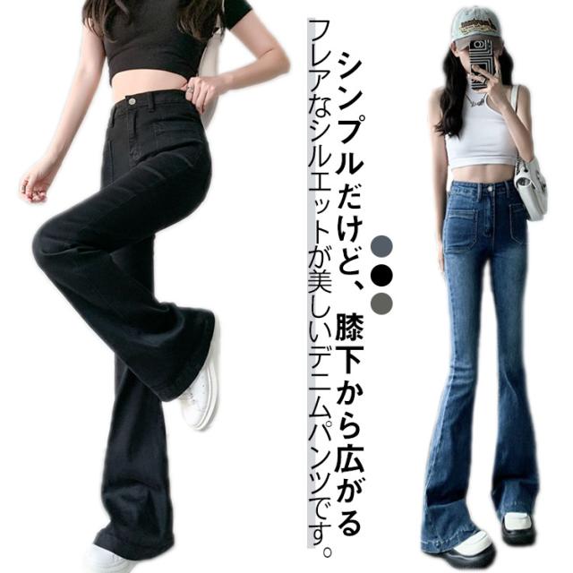ジーンズ フレアパンツ デニムパンツ フレアパンツ オールシーズン ロングパンツ ハイウエスト 大きいサイズ 脚長効果 ワイドパンツ カジュアル きれいめ ポケットあり 韓国 ボトムス 大人 細見え 着痩せ 美脚