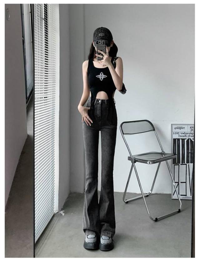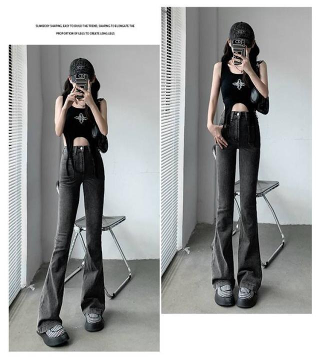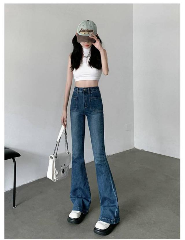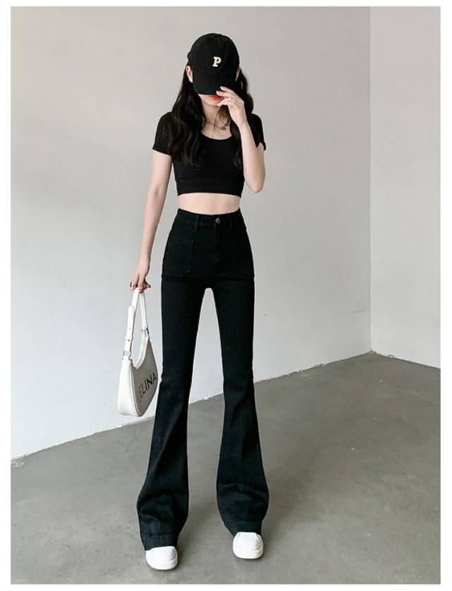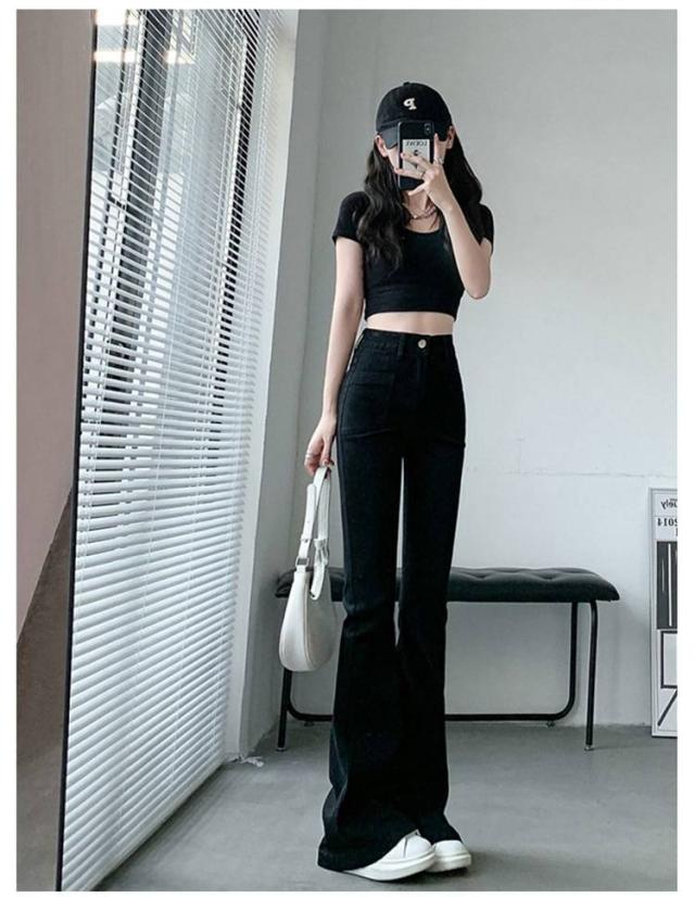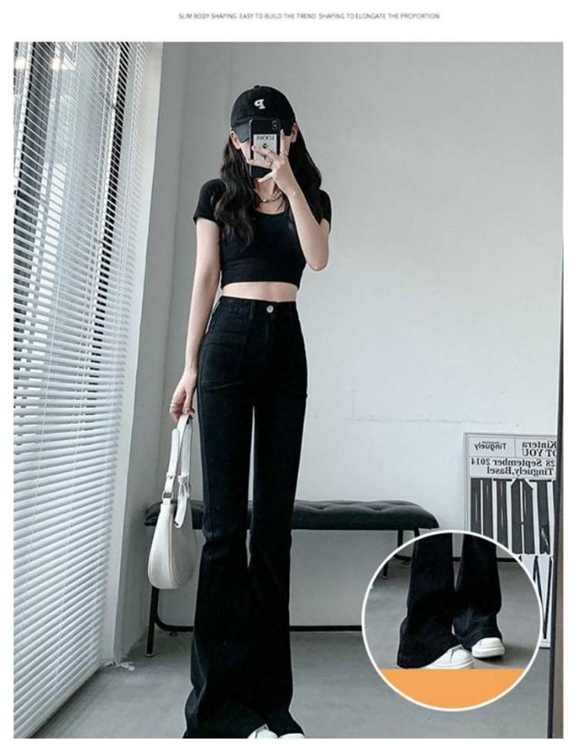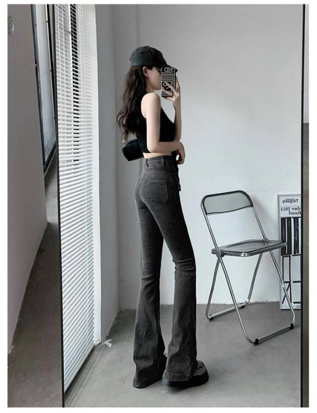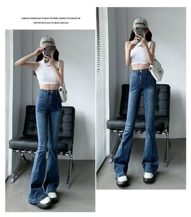 ジーンズ フレアパンツ デニムパンツ フレアパンツ オールシーズン ロングパンツ ハイウエスト 大きいサイズ 脚長効果 ワイドパンツ カジュアル きれいめ ポケットあり 韓国 ボトムス 大人 細見え 着痩せ 美脚