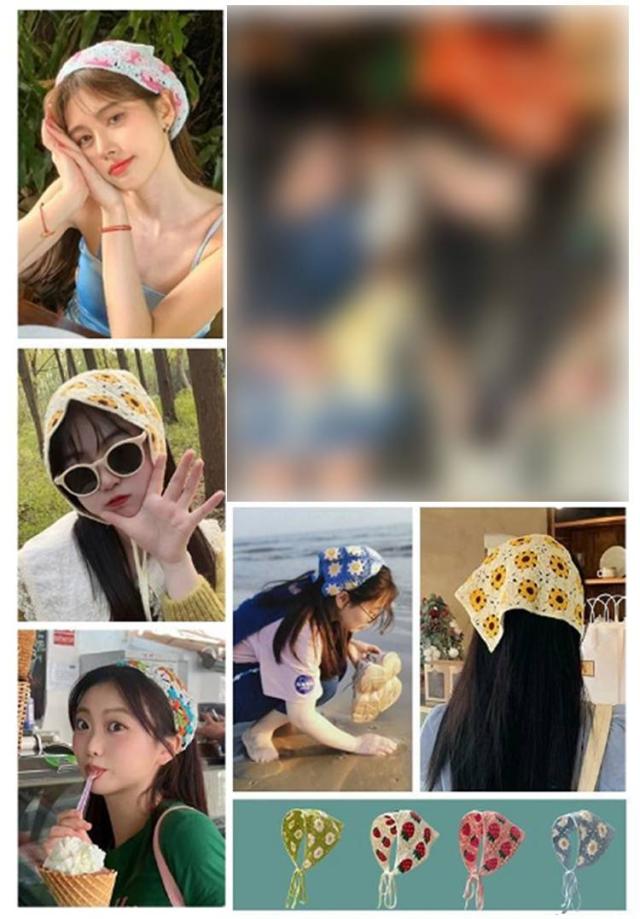 毛糸 三角巾 スカーフ レディース 花柄 ヘアバンド 花柄 かわいい バブーシュカ バブーシュカ バンダナ カチューシャ 小顔効果 可愛い ターバン フリーサイズ 春夏 普段使い ヘアアクセサリー