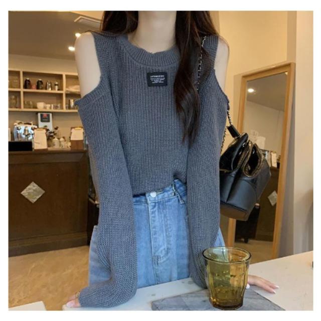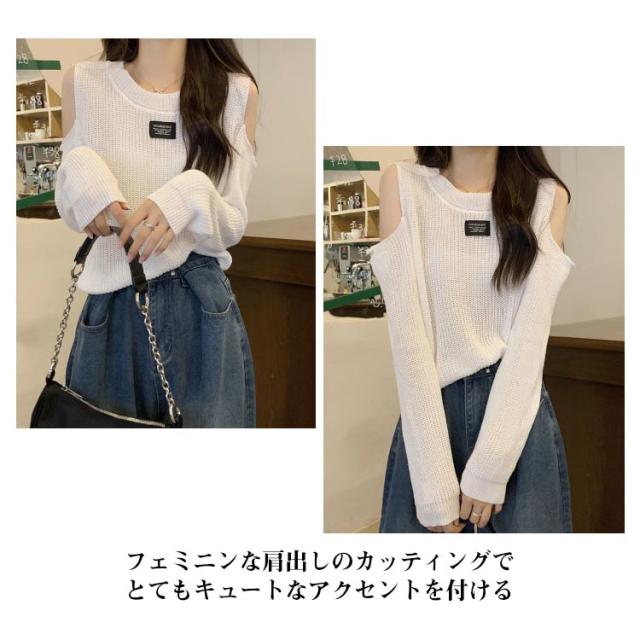 長袖 春 レディース トップス tシャツ カットソー 秋 リブ 細身 肩あき 肩出し スリム リブ編み タイト ニット レイヤード風 トップス カジュアル 肌見せ 韓国ファッション かわいい シンプル タートルネック フェミニン カットソー