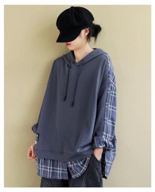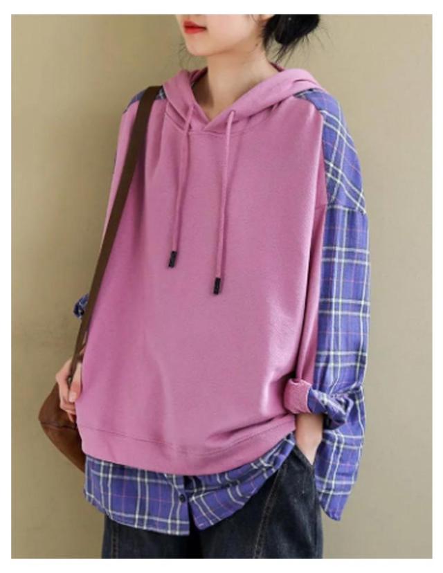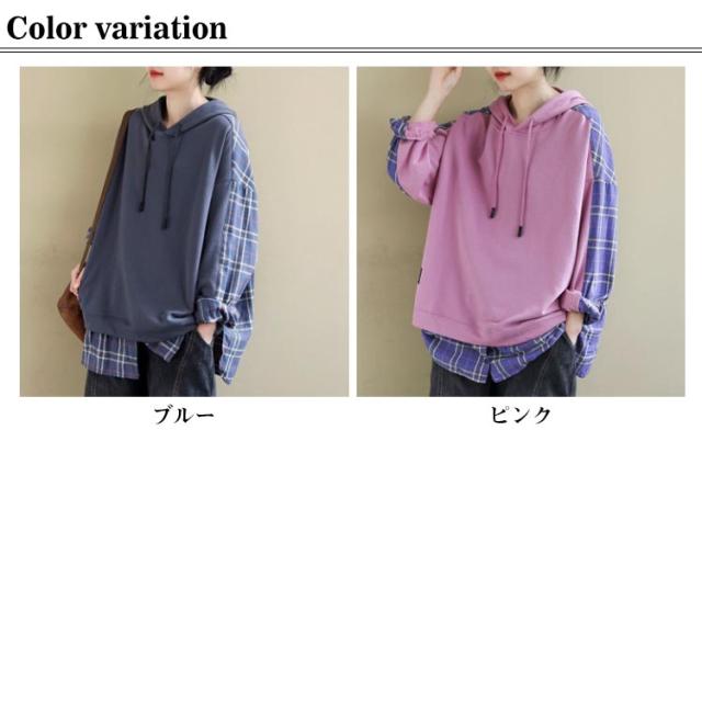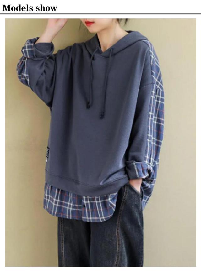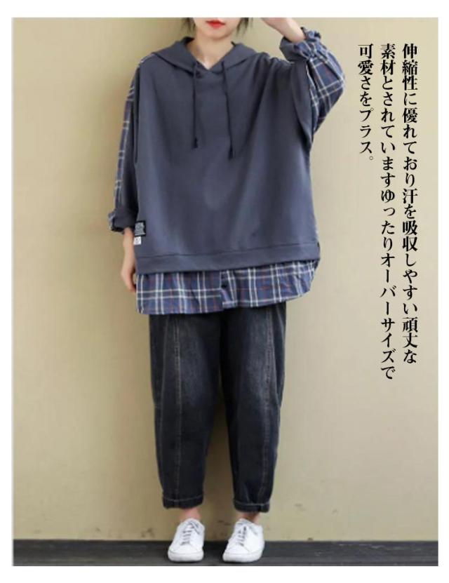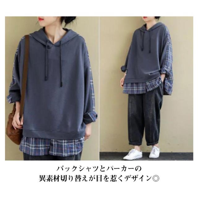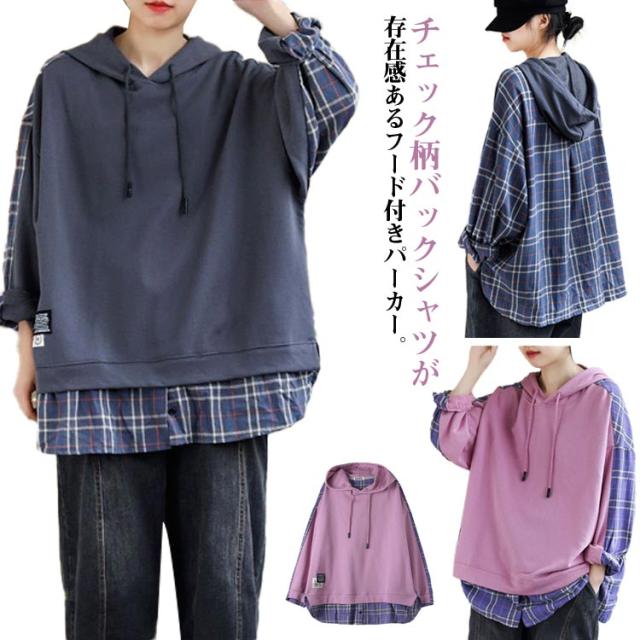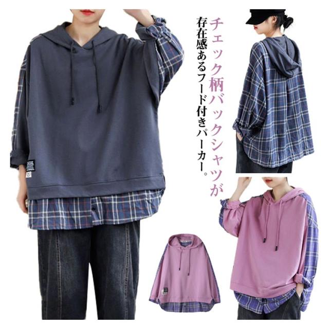 トップス トレーナー チェック柄 レディースパーカー バックシャツ 長袖 レディース 大きめ 大きいサイズ パーカー パーカー 春 秋 冬 スウェット フードパーカー 部屋着 無地 ビックサイズ 薄手 大きいサイズ 長袖 春 30代 40代 冬 20代 秋服 服 S M L XL 2XL
