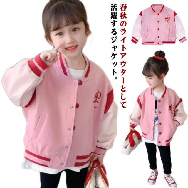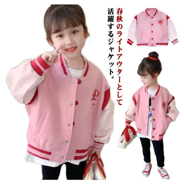子供用 フライトジャケット 子供服 ジャンパー ピンクジャケット 子供服 ジャケット スタジャン 秋 女の子 野球服 アウター 春 キッズ スタジャン ゆったり 大きいサイズ ジャンパ ブルゾン カジュアル 韓国ファッション ストリート系