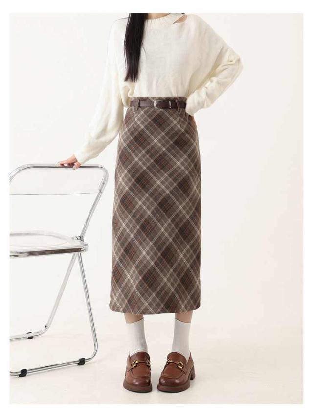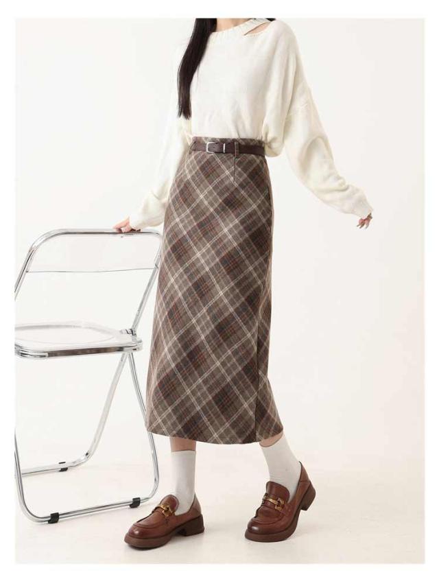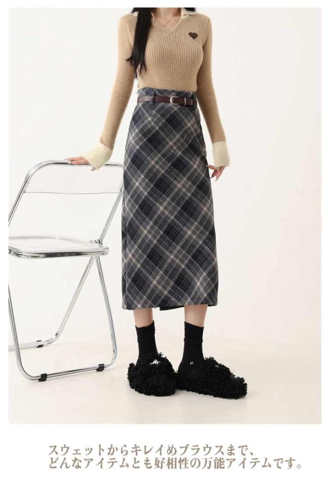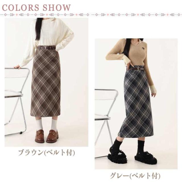 ボトムス チェック スリット スカート ベルト付き ペンシルチェックスカート 大きいサイズ ロング丈 バックゴム チェック チェック柄 カジュアル きれいめ 大人可愛い 大人カジュアル