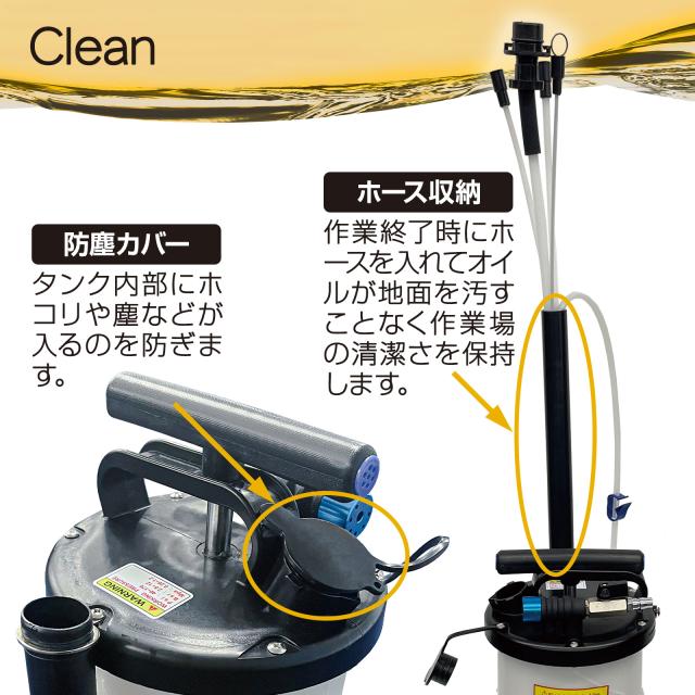 防塵カバー:作業終了時にホースを入れてオイルが地面を汚すことなく清潔さを保持します。
