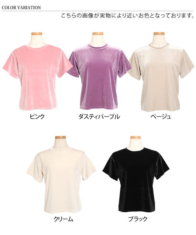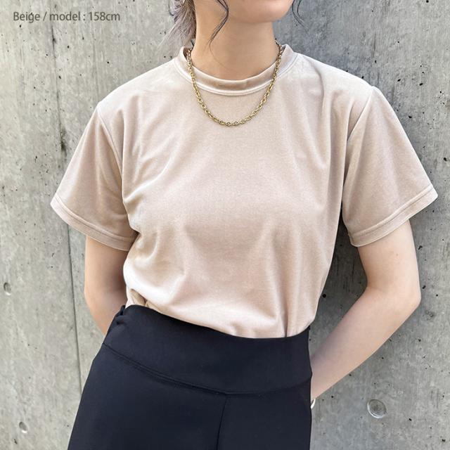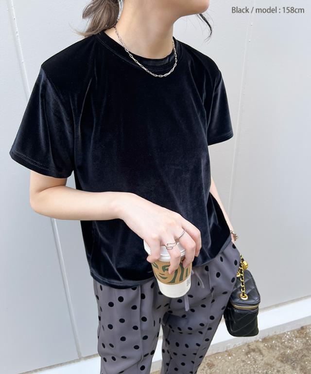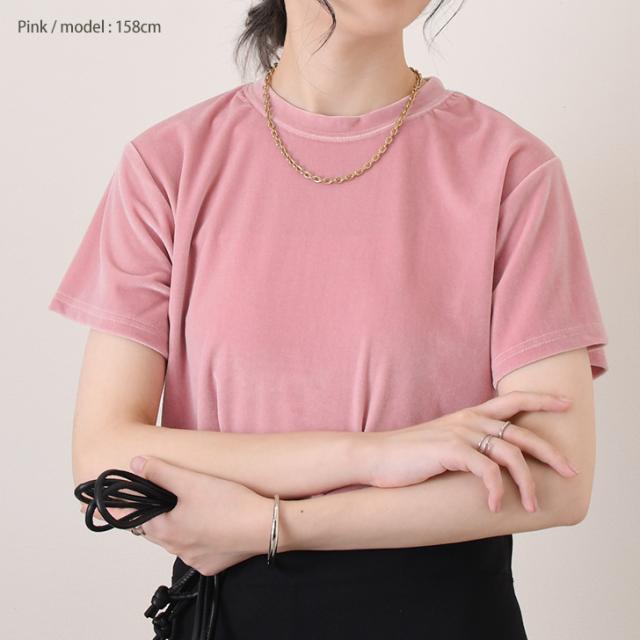 新作 ベロア トップス レディース 半袖 秋 冬 カットソー Tシャツ インナー きれいめ 上品 シンプル オフィス お出かけ 可愛い 伸縮性