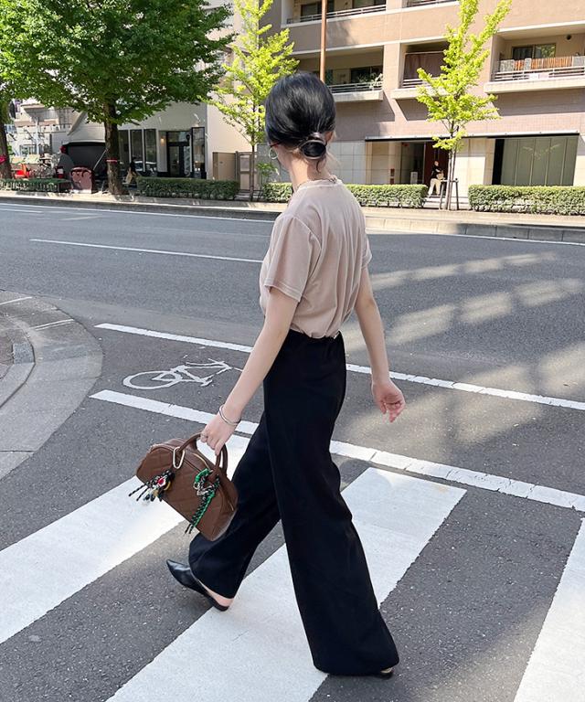 ワイドめのシルエットと伸縮性のある生地で締め付け感なし!