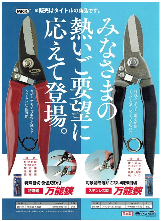 モトコマ 万能鋏 BH-180 針金・ブリキ・盆栽・生花・造花用 万能バサミ MKK ネコポス ’