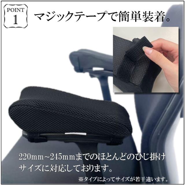 マジックテープで簡単装着。ほとんどのひじ掛けに対応しています。