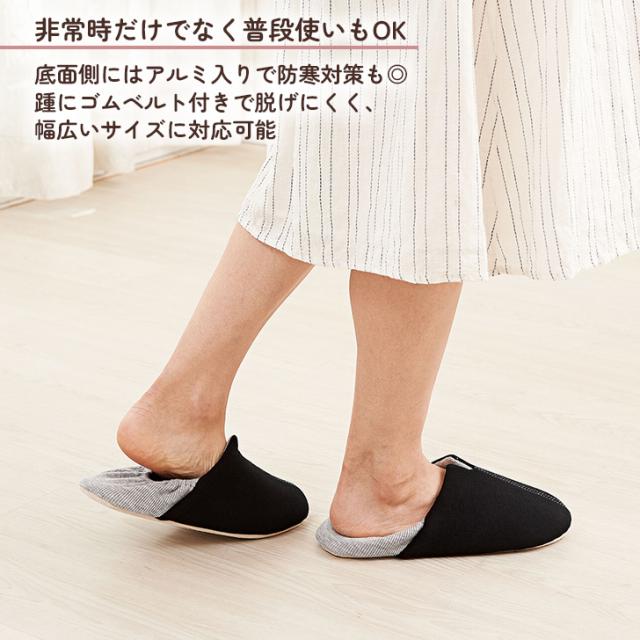 ●サッと履けて歩きやすい!釘やガラス片から足を守る防災スリッパ