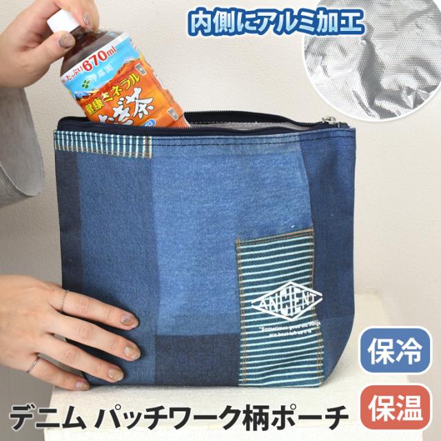 新作 デニムパッチワーク保冷保温ポーチ 保冷ポーチ 保冷バッグ 保冷バック クーラーバッグ 保冷袋 横型 ペットボトル 飲み物 バッグ 大容量 軽い ランチバッグ お弁当 保冷剤入れ 持ち歩き 持ち運び 折りたたみ