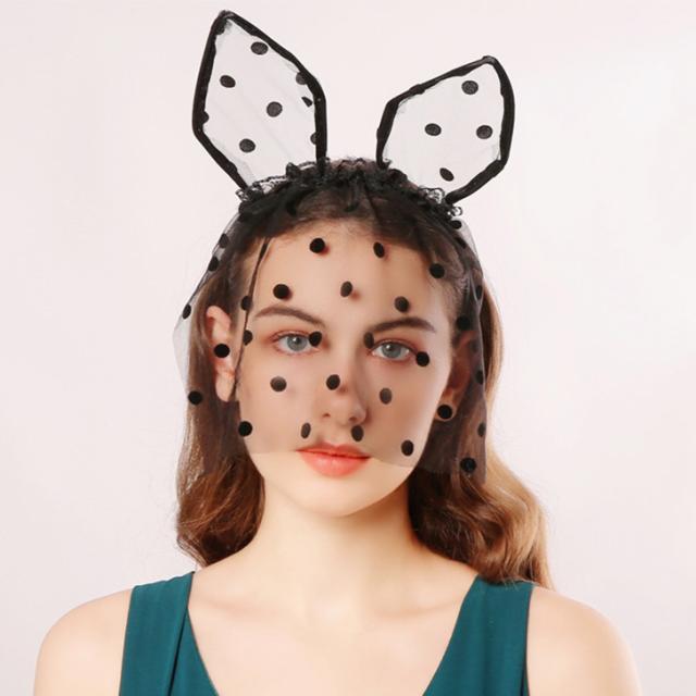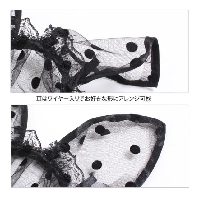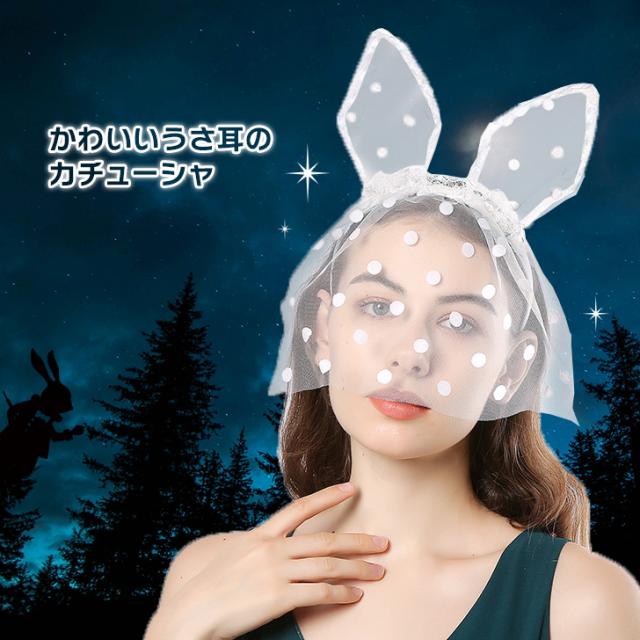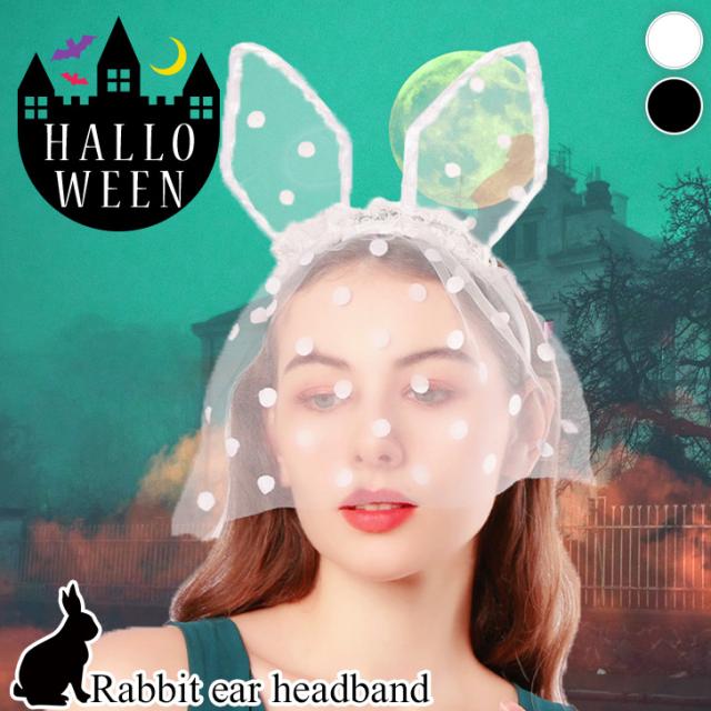 新作 ベール付き ドット柄 チュール レース うさ耳 カチューシャ 選べる2カラー レディース コスプレ 仮装 変装 ハロウィン 女性 被り物 パーティー イベント おしゃれ かわいい セクシー 撮影 インスタ映え