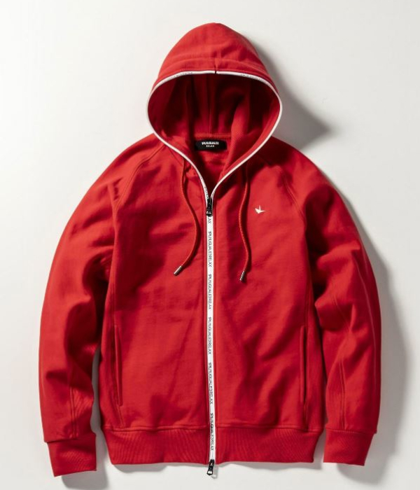 止水ファスナーにブランドロゴを配置しスポーティな表情に仕上がりました。