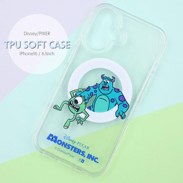 iPhone16 ぴかてる MagSafe対応 マグネットアクセサリー対応 衝撃吸収 バンパー TPUソフトケース ディズニー Disney ミッキーマウス アリエル くまのプーさん マイク サリー PIXER ピクサー メール便送料無料