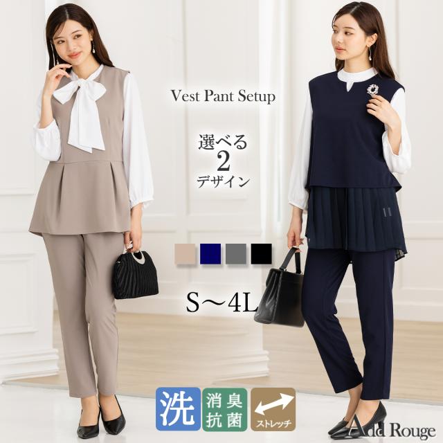 スーツ レディース セットアップ 洗える パンツスーツ ベストスーツ オフィスカジュアル 上下セット ノースリーブ ドルマン レディーススーツ ストレッチ 大きいサイズ フォーマル 通勤 女性 ネイビー30代 40代 50代 t5328