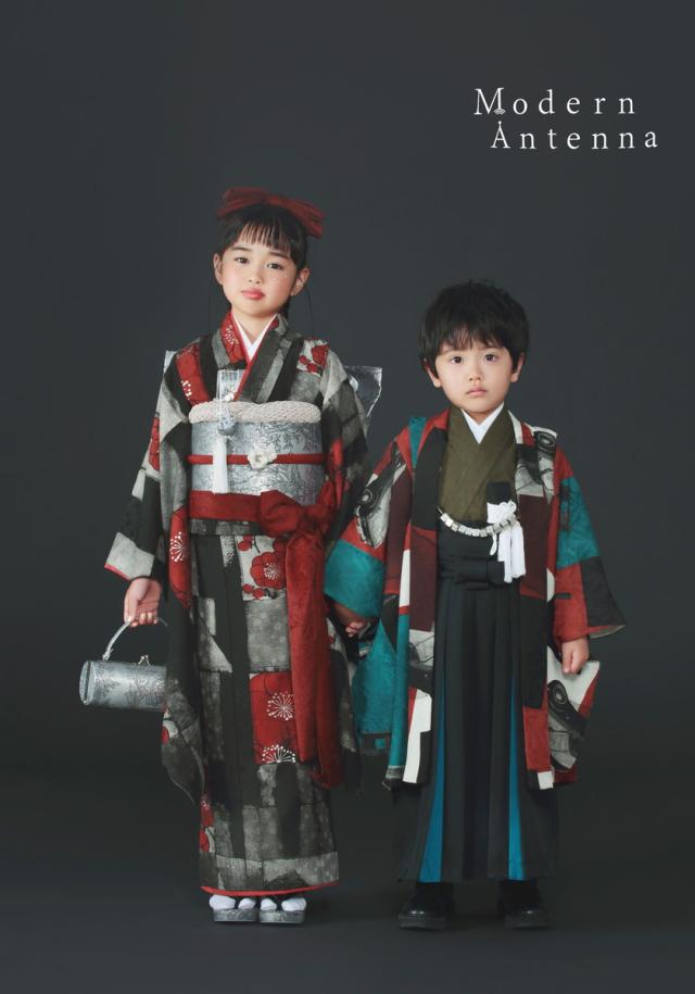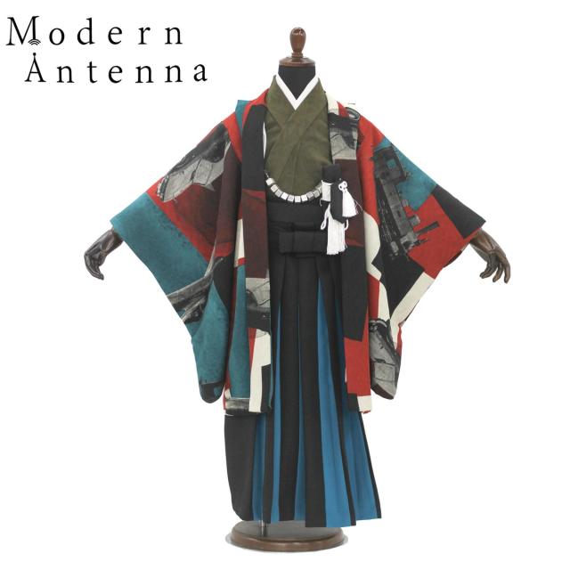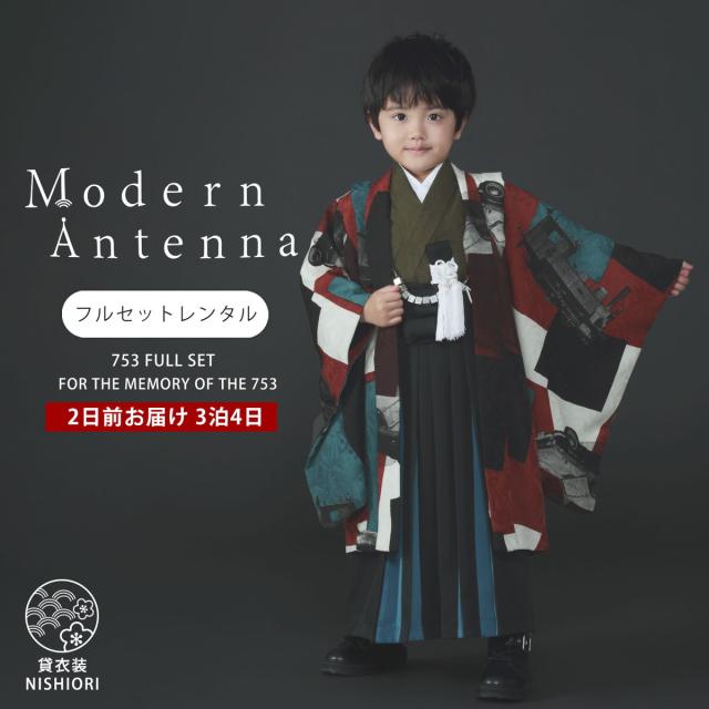 Modern Antenna モダンアンテナ レンタル 七五三 【かんたん着付け】羽織袴 五歳 男児 着物 アンサンブル セット フルセット 5歳 貸衣装 子供 男の子 着物セット お正月 卒業式 赤 黒 青 新品足袋プレゼント