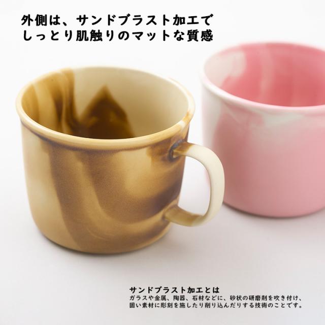 歴史と伝統のある美濃焼で作られたMoiscupは、焼き物の仕上げでは珍しい「サンドブラスト加工」が施されて、 しっとりとしたマットな仕上がりが特徴。つい手が伸びてしまうような手触りです。