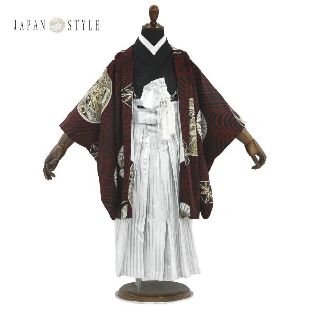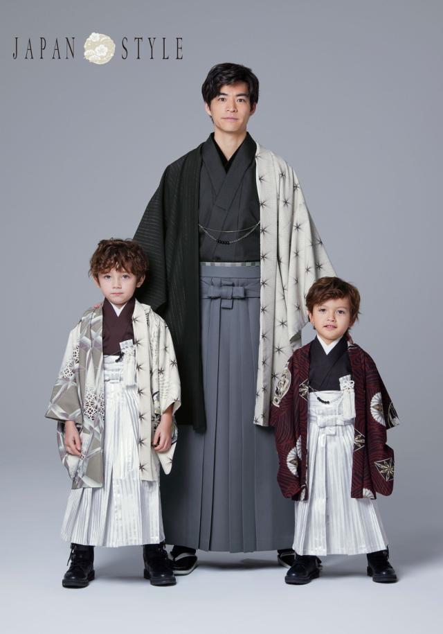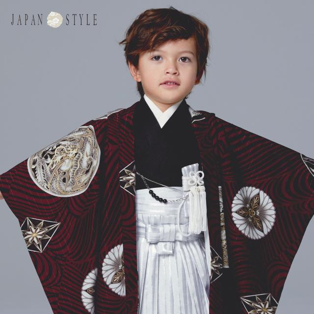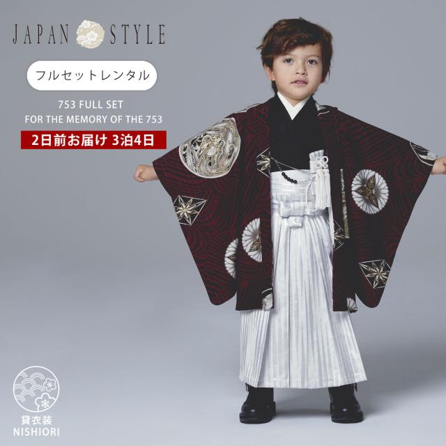 JAPAN STYLE レンタル 七五三 【かんたん着付け】羽織袴 三歳 男児 着物 アンサンブル セット フルセット【3歳 貸衣装 子供 男の子 着物セット】 卒業式【往復送料無料】 鷹 兜 黒 グレー 白 新品足袋プレゼント