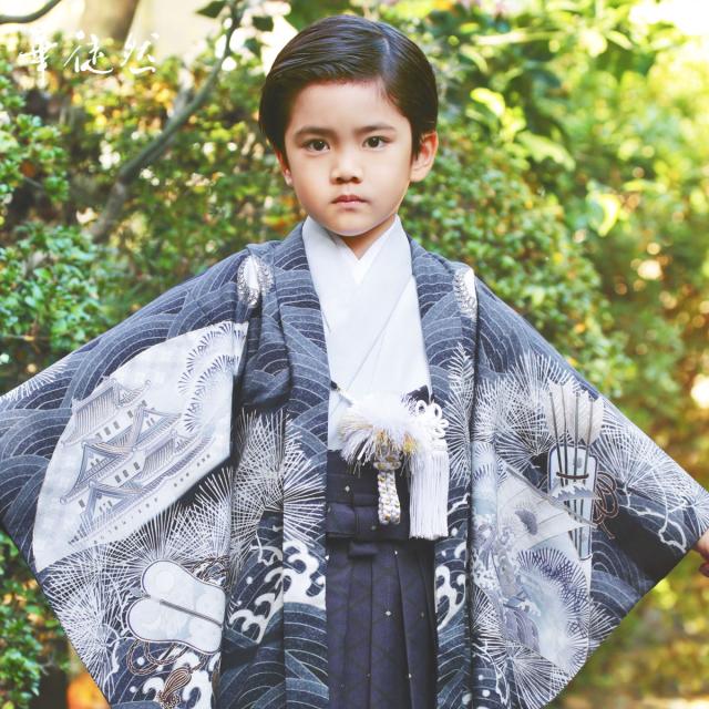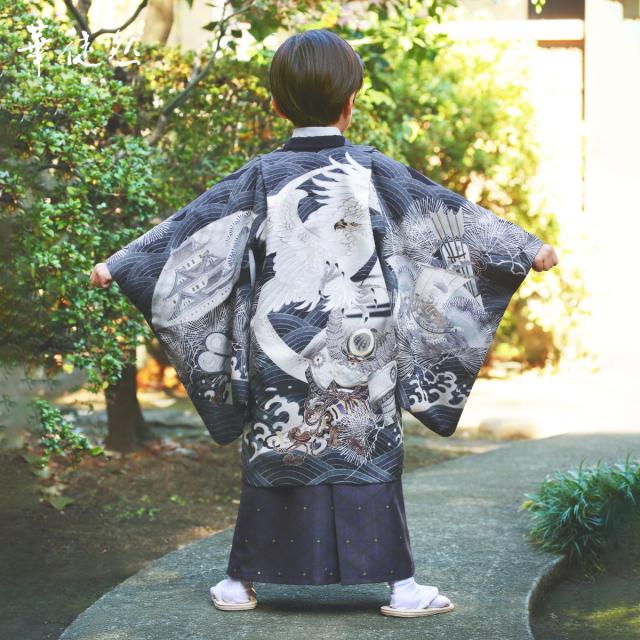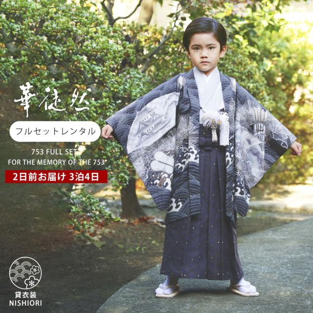 華徒然 レンタル 七五三 【かんたん着付け】羽織袴 五歳 男児 着物 アンサンブル セット フルセット【5歳 貸衣装 子供 男の子 着物セット】お正月 卒業式【往復送料無料】 古典 黒 赤 紫 新品足袋プレゼント
