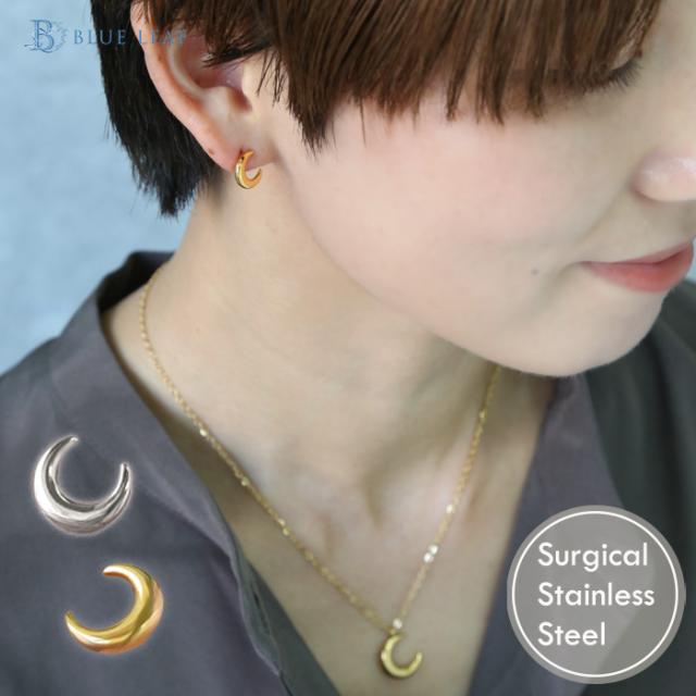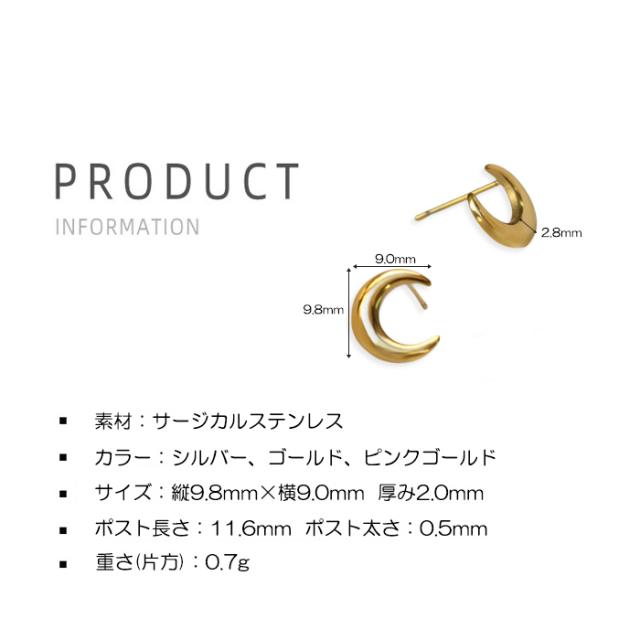 ピアス 月 三日月 ムーン サージカルステンレス SUS316 キャッチ k18コーティング 両耳 ペア 低アレルギー シルバー ゴールド ピンクゴールド ジュエリー おしゃれ ニッケルフリー お守り ジュエリー
