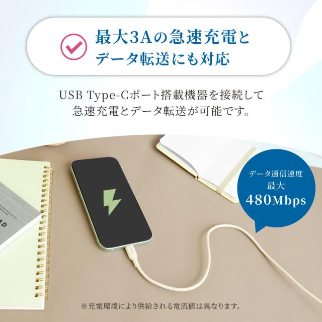 充電器 ケーブル データ転送対応 3A 丈夫 ケーブルバンド 急速充電 Type-C やわらかい owltech オウルテック おうるてっく