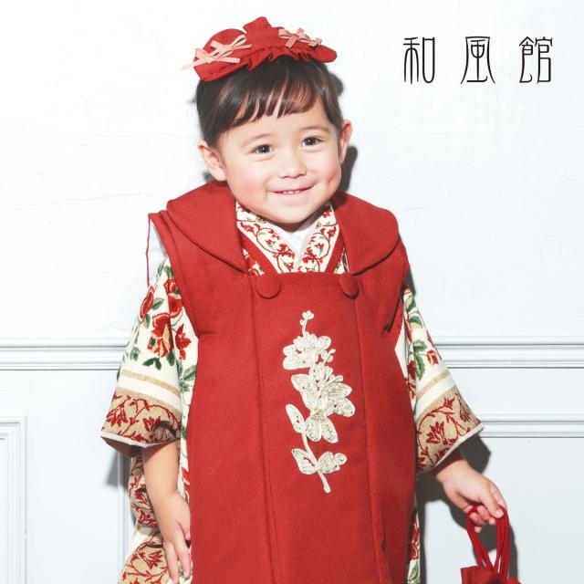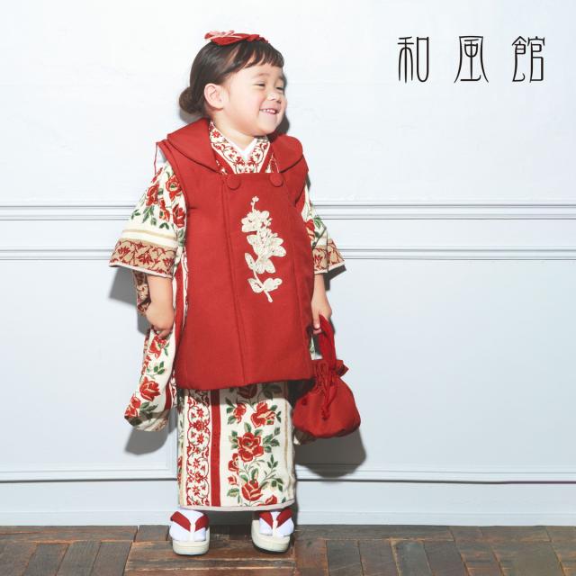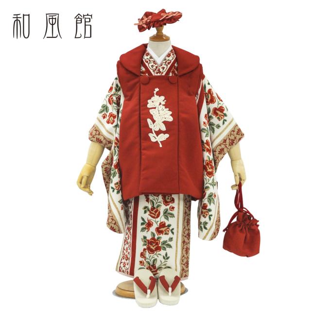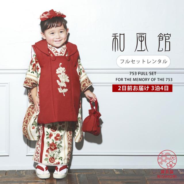 和風館 七五三 レンタル 女の子 3歳 着物 被布 753着物 フルセット 着物レンタル 貸衣装 七五三 三歳 子供着物 女児 子ども 結婚式 和装 赤 白 新品足袋プレゼント No.306