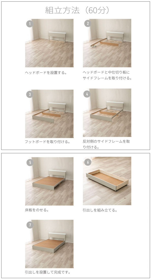 ※ヘッドボード部分のみ完成した状態でお届けします