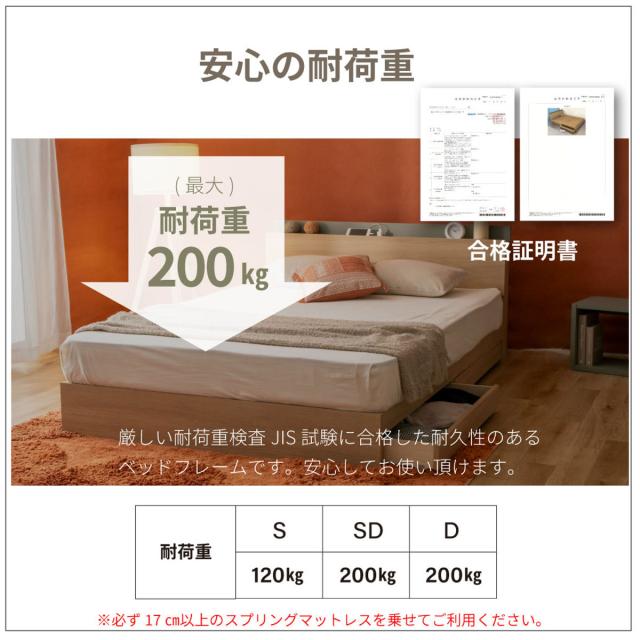 | 注意事項 | ※マットレスは付属しておりません ※必ず厚さ17cm以上のスプリングマットレスをご使用ください ※商品ページ内には別の商品を含む画像を使用しています |