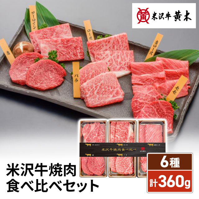 米沢牛黄木 米沢牛 焼肉 食べ比べセット 計360g お取り寄せグルメ 焼肉 冷凍 肉 牛肉 和牛 銘柄牛 ブランド牛