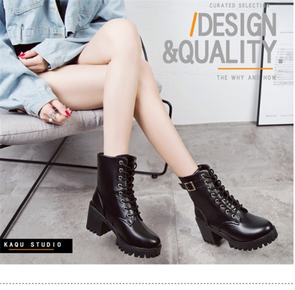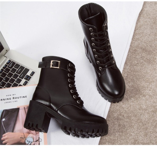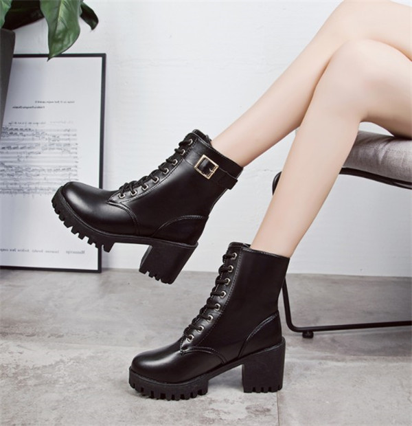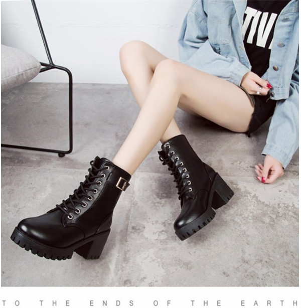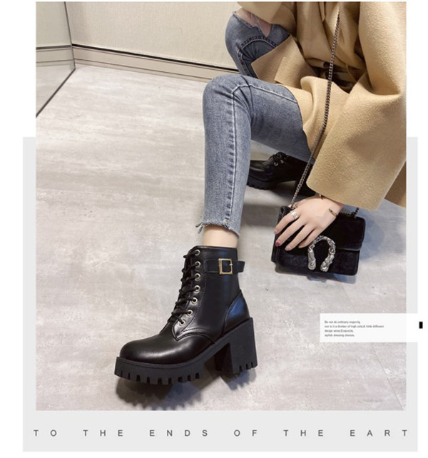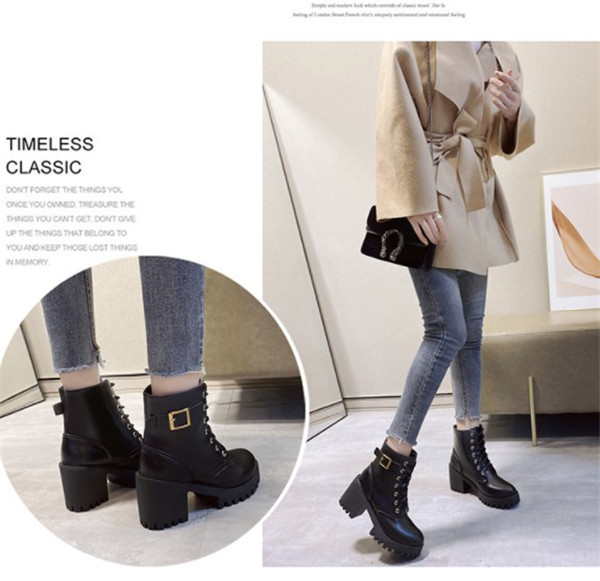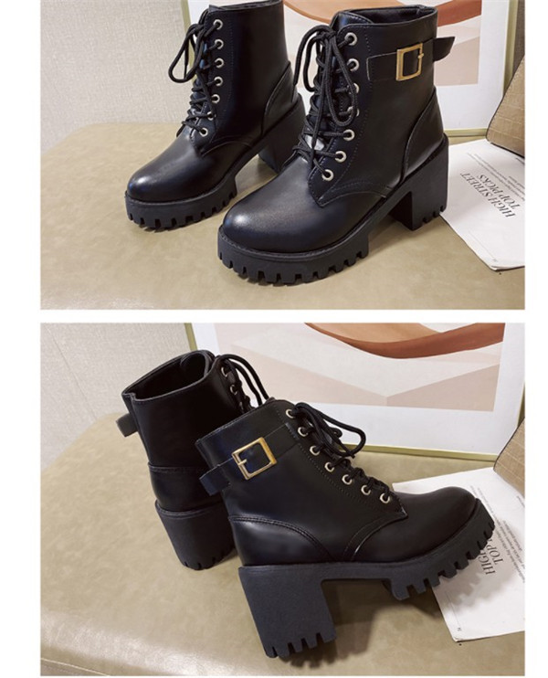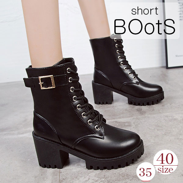 ポイント超超祭利用可 ショートブーツ レディース ワークブーツ 厚底 ハイヒール 美脚 太ヒール レースアップ 靴 ブーツ 革靴 カジュアル シューズ フェイクレザー PU