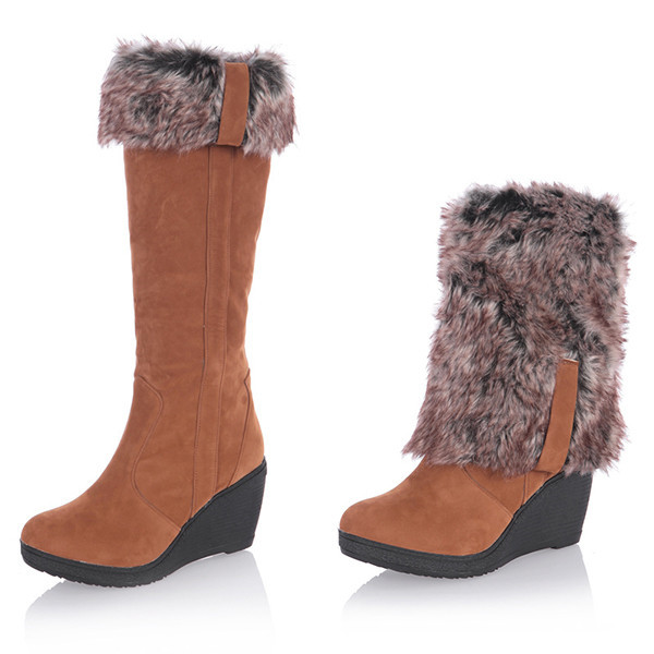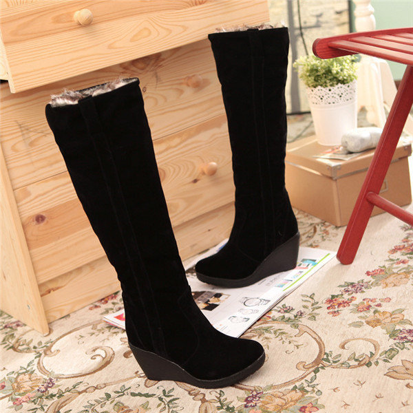 店長イチオシ ムートンブーツ ロングブーツ レディース 裏起毛 ウェッジソール 裏ボア 大きいサイズ 暖かい 無地 スエード調 ロング丈 防寒 ハイヒール