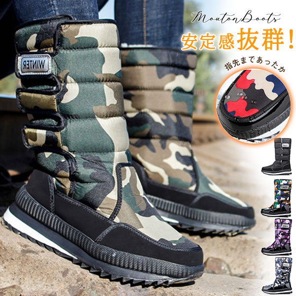 ムートンブーツ ロング スノーブーツ 雪靴 レディース ブーツ 防寒 迷彩柄 裏起毛 裏ボア スノーシューズ ワークブーツ ふわふわ 冬靴 冬