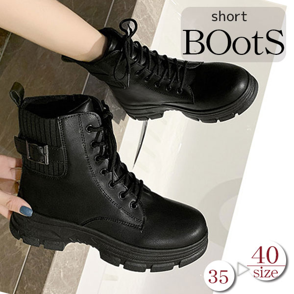 ショートブーツ レディース ワークブーツ 厚底 ハイヒール 美脚 太ヒール レースアップ 靴 ブーツ 革靴 カジュアル シューズ フェイクレザー PU