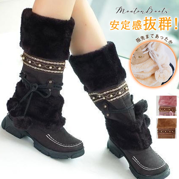 ムートンブーツ ロングブーツ レディース 裏起毛 ウェッジソール 裏ボア 大きいサイズ 暖かい 無地 スエード調 ロング丈 防寒 寒さ対策