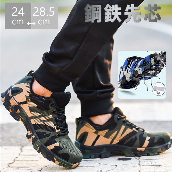 ポイント超超祭利用可 安全靴 鋼鉄先芯 セーフティーシューズ メンズ レディース スニーカー 迷彩 カモ柄 作業靴 幅広 スポーツ メッシュ 防滑 軽量 大きいサイズ