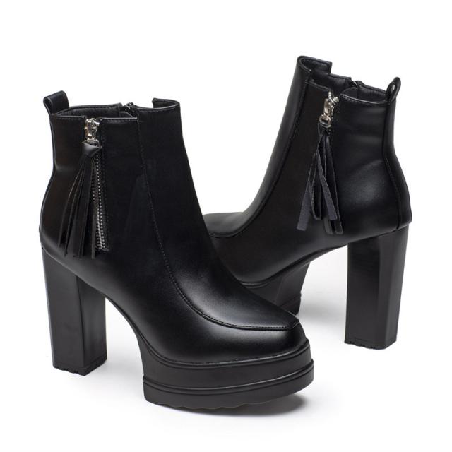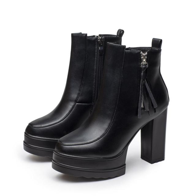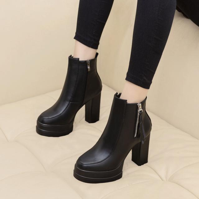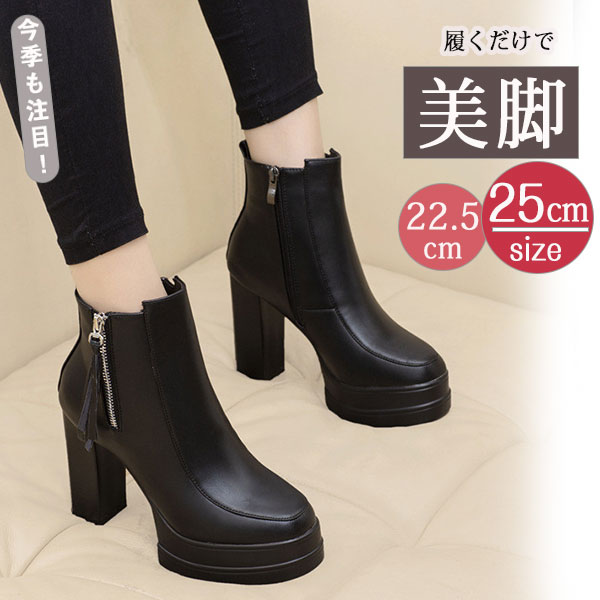 ショートブーツ レディース 靴 サイドジップ 厚底 太ヒール ハイヒール カジュアル シューズ ブーティー 美脚 疲れにくい おしゃれ 歩きやすい