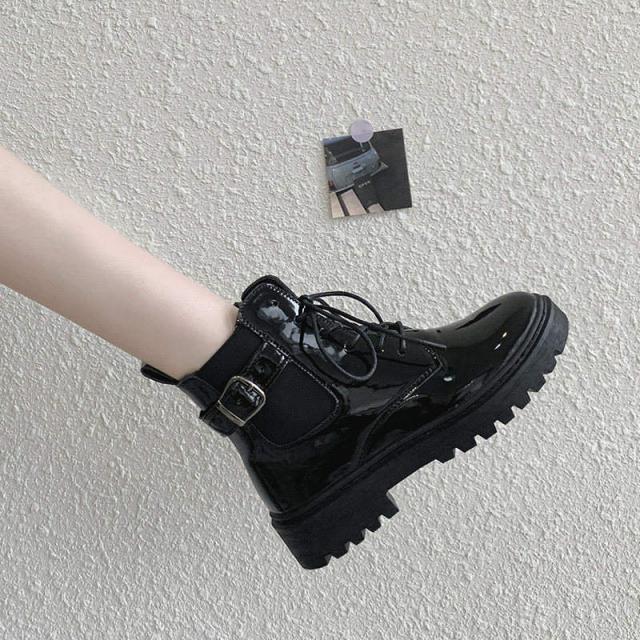 エンジニアブーツ 編み上げ ショートブーツ レディース 厚底 レースアップ ワークブーツ ベルト付き 秋冬 履きやすい カジュアル 可愛い