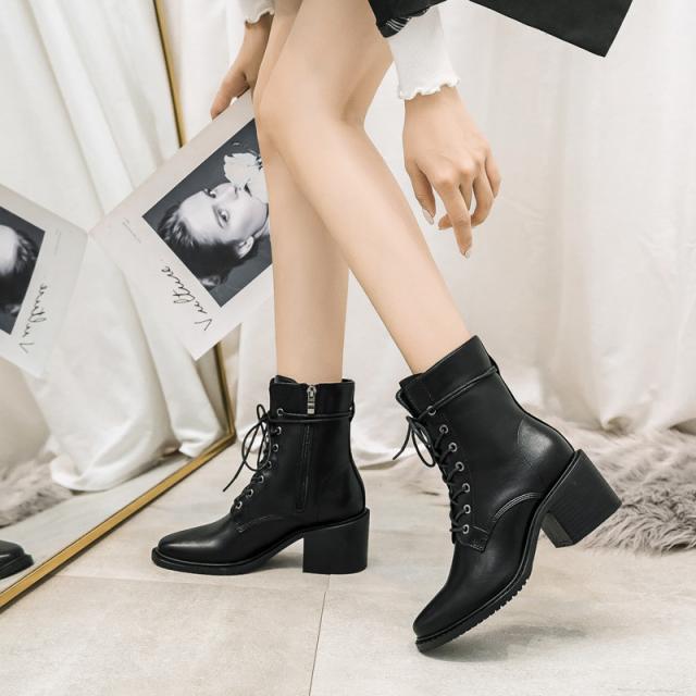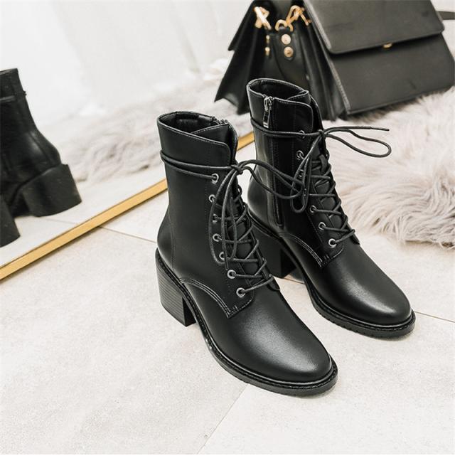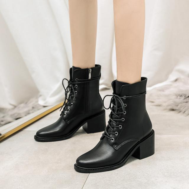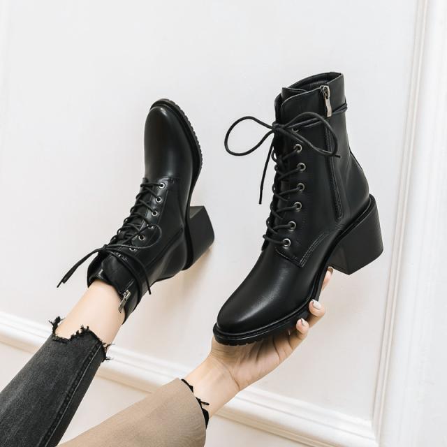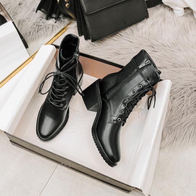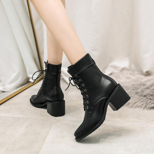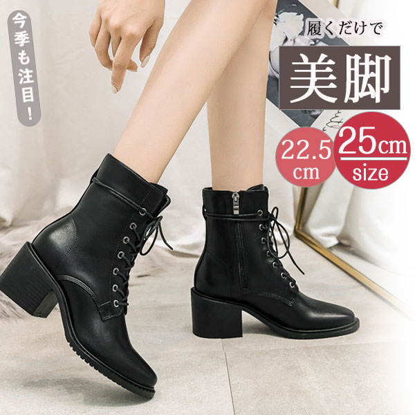 編み上げブーツ ショートブーツ レディース エンジニア レースアップブーツ 靴 太ヒール サイドジップ 歩きやすい カジュアル 美脚 可愛い