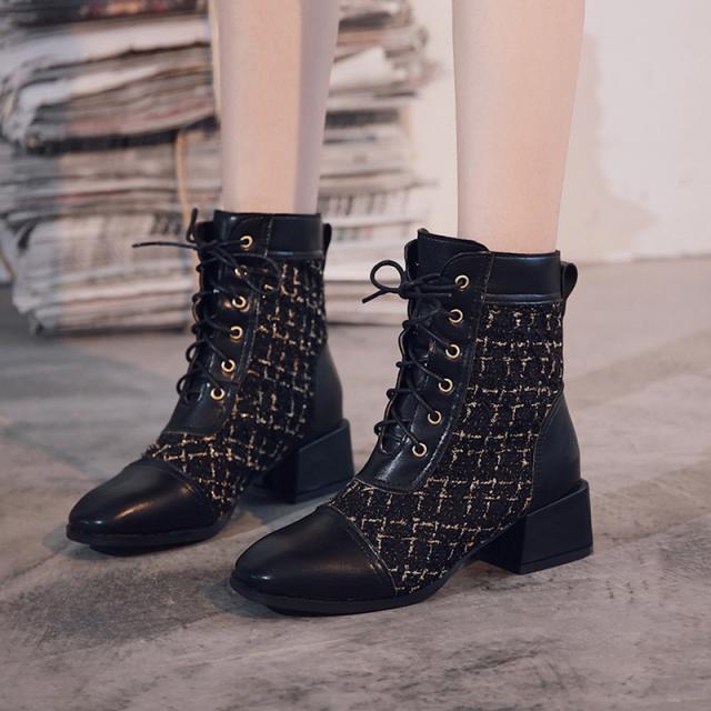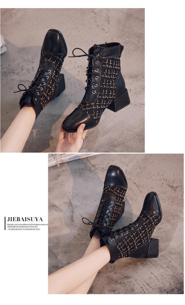 ショートブーツ レディース 編み上げブーツ 靴 太ヒール 厚底 ポインテッドトゥ カジュアル レースアップブーツ 美脚 疲れにくい 通勤 おしゃれ