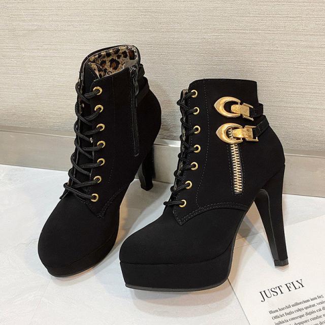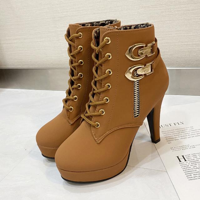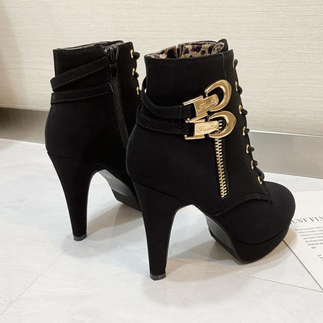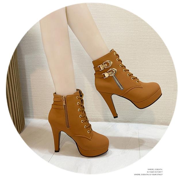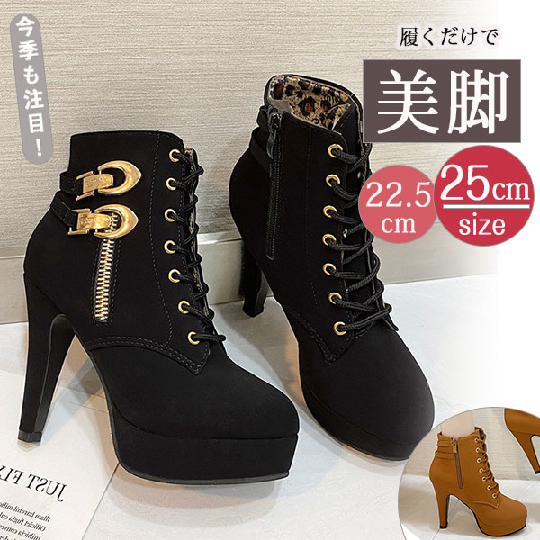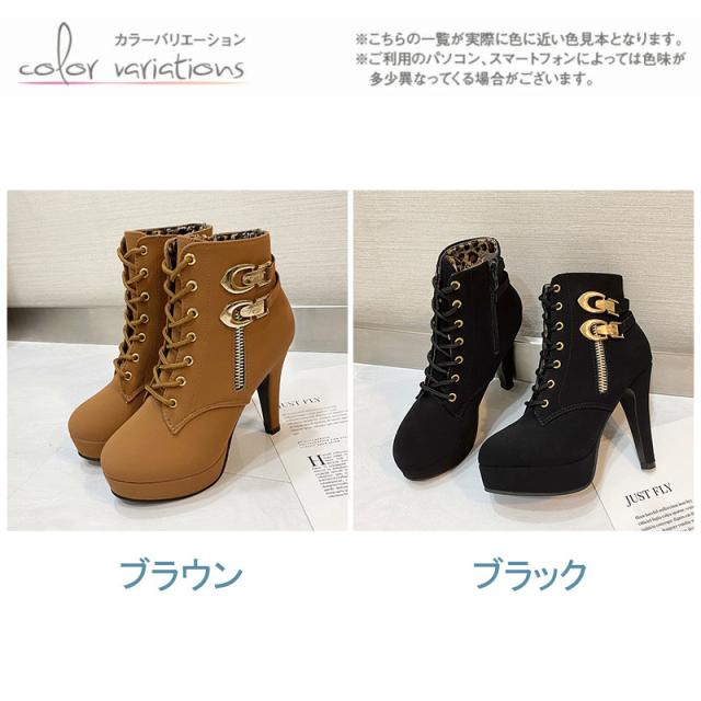 セール中 編み上げブーツ ショートブーツ レディース 厚底 レースアップブーツ 靴 太ヒール ベルト付き ハイヒール 歩きやすい カジュアル 美脚 可愛い