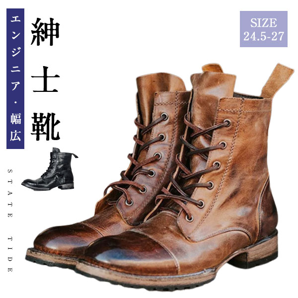 ワークブーツ メンズ ショートブーツ 編み上げブーツ 冬 エンジニア レースアップ 紳士靴 かっこいい おしゃれ マウンテン 暖かい ミリタリー