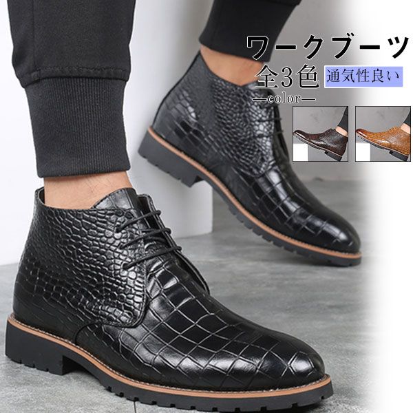 店長イチオシ ワークブーツ ショートブーツ メンズ 紳士靴 クロコ型押し 編み上げ レースアップ エンジニア 仕事靴 カジュアル 革靴 かっこいい ビジネス