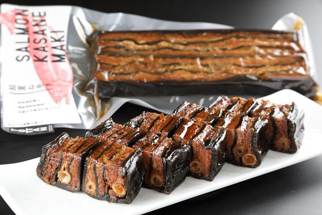・柔らかく煮込んだ知床鮭の中骨肉と、良質の羅臼昆布を使った重ね巻き。
