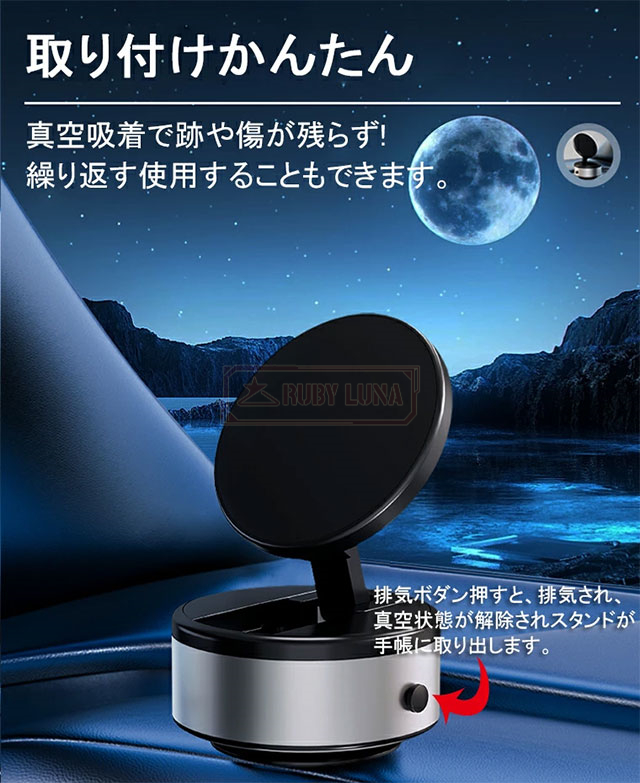 | 【超強マグネット吸着式】 | ◆着脱が1秒で!片手で簡単にスマホを着脱できます。 |