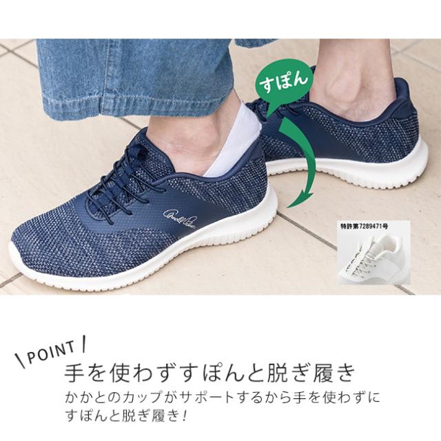 かかとのカップがサポートするから手を使わずにすぽんと脱ぎ履き