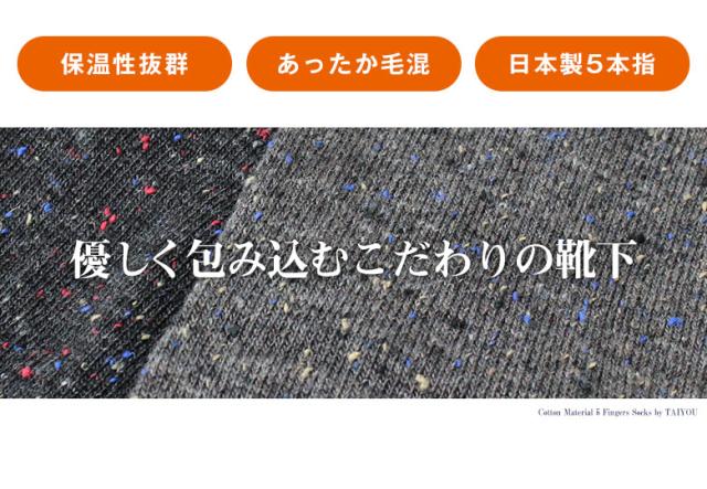 毛混メンズ 5本指ソックス ウール混 5本指ソックス 水虫 冷え 重ね履き ビジネスソックス 24-26cm ★322 太陽ニット