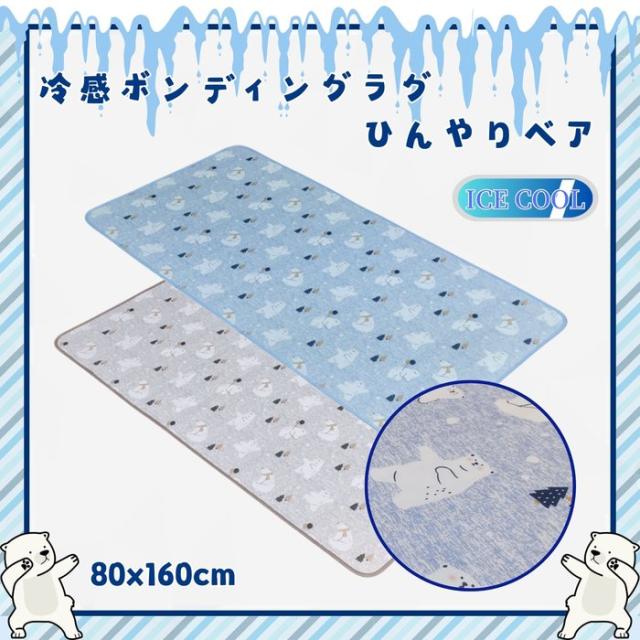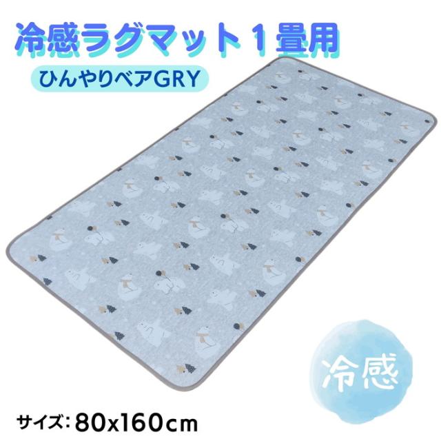 ひんやりクール冷感ラグマット ひんやりベア 80x160cm グレー 肌触り爽やか 便利な1畳用サイズ