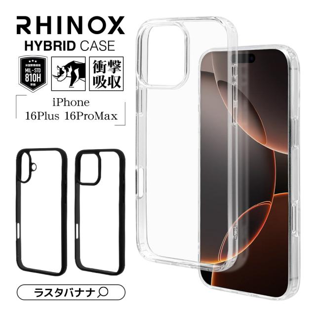 【送料無料】iPhone16 Plus 16 Pro Max ケース カバー ハイブリッド RHINOX ライノックス 耐衝撃吸収 MIL クリア TPUバンパーケース アイフォン ラスタバナナ 8262IP467HACL 8263IP467HABK 8281IP467PHACL 8282IP467PHABK