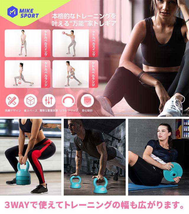 可変式ケトルベル 3in1 初心者 上級者 重さ変更 2.3~5.4kg 5LB 8LB 12LB プレート調節可能 自宅トレーニング ジム おしゃれ 筋トレ ハンドル 両手で持ちやすい 筋トレ 運動不足解消 全身トレーニング 腹筋 背筋 ジム 初心者 男女通用 子供 大人 かわいい